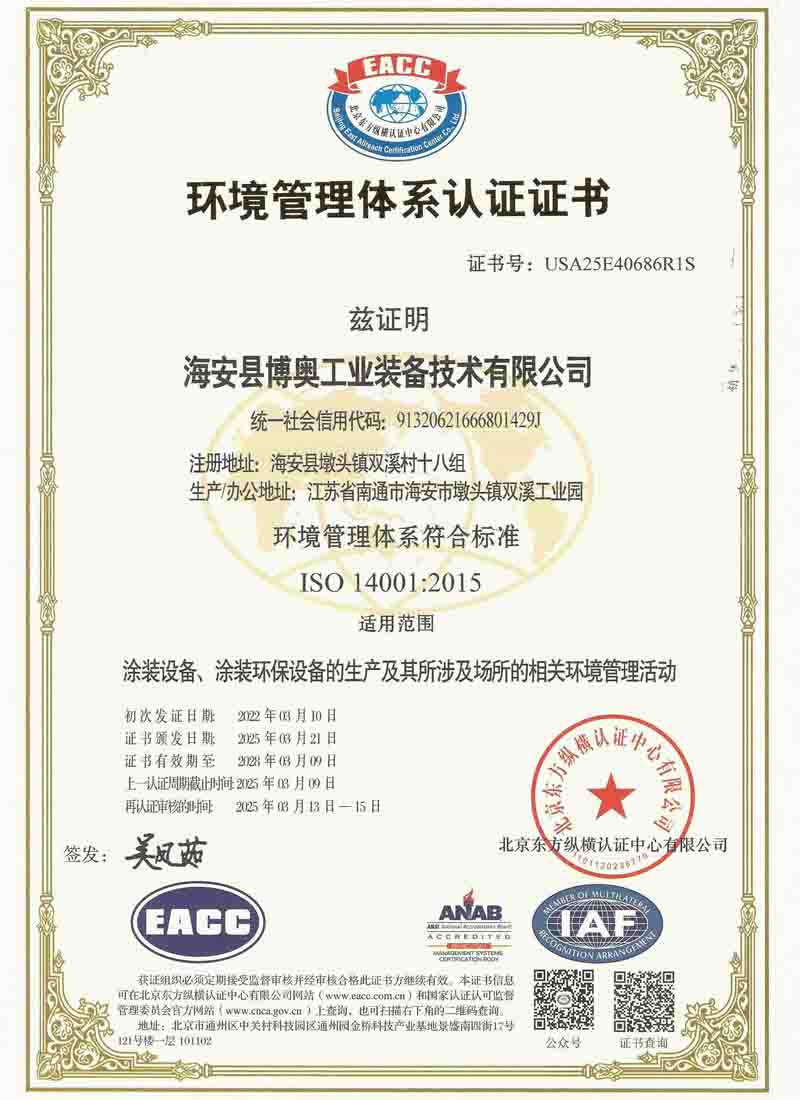 環境管理體系認證證書